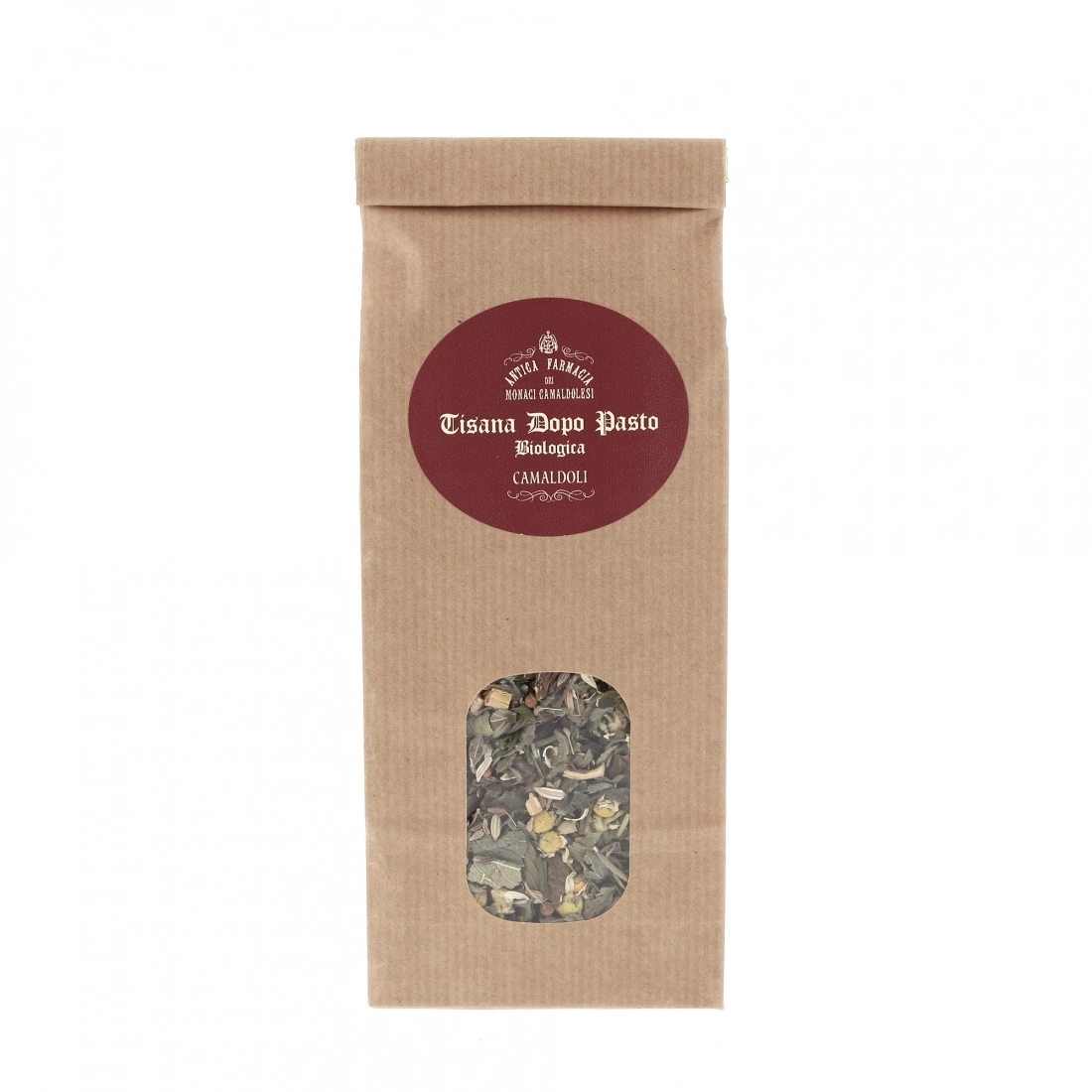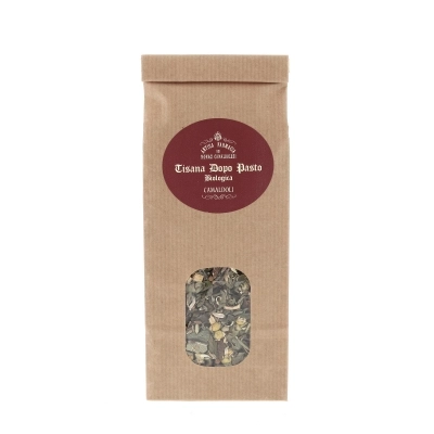 Gradevole tisana che favorisce la funzione digestiva. Questa bevanda digestiva è prodotta con erbe accuratamente selezionate: foglie di menta, semi di finocchio, melissa, radici di liquirizia, semi di anice, semi di cumino, foglie di salvia, rosmarino e semi di coriandolo. Confezionato dal Laboratorio Cosmetico della Casa Generalizia Congregazione Eremiti Camaldolesi Toscana.