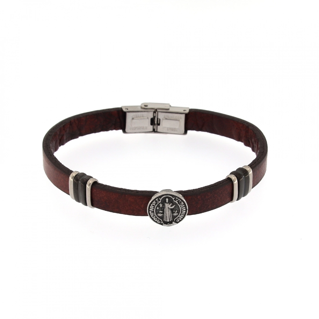Bracciale uomo in pelle marrone e acciaio San Benedetto