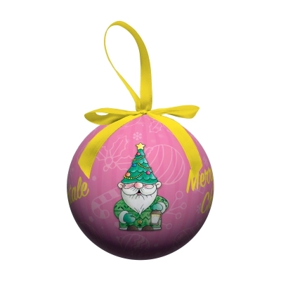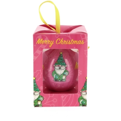 Simpatica pallina natalizia (del diametro di 7,5 cm) inserita all'interno di una bella confezione in cartoncino che la rende adatta per essere regalata. Sulla pallina è disegnato un simpatico gnomo-babbo Natale e sulla confezione l'augurio di un buon Natale (Merry Christmas). Bellissimo articolo dai colori vivaci, da acquistare per sé stessi o da regalare a qualcuno di speciale per augurargli un sereno Natale.