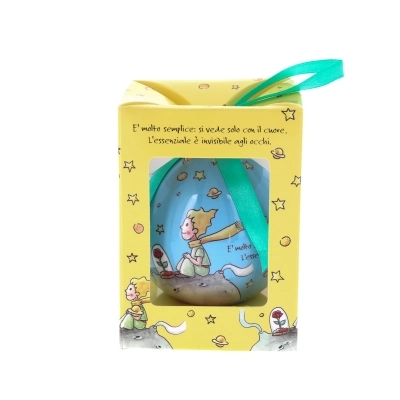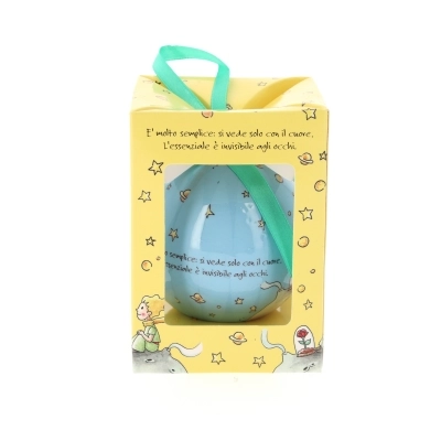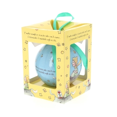 Tenera pallina natalizia (del diametro di 7,5 cm) inserita all'interno di una bella confezione in cartoncino che la rende adatta per essere regalata. Sulla pallina è raffigurato il Piccolo Principe, protagonista del celebre racconto di Antoine de Saint-Exupery e la frase: "E' molto semplice: si vede solo con il cuore. L'essenziale è invisibile agli occhi". Bellissimo articolo, dai colori tenui e romantici, da acquistare per sé stessi o da regalare a qualcuno di speciale per augurargli un sereno Natale. Il Natale è infatti un momento magico e perfetto per capire quanto sia prezioso il dono della vita.