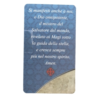 Confezione natalizia con collanina in cordoncino e stella di Betlemme in metallo. Sul davanti della confezione è riportata la frase "Brilli nel tuo cuore e ti orienti sulla strada della pace incontro al Signore della Storia". Sul retro una bella preghiera. La stella di Betlemme è simbolo di salvezza, luce e speranza: regalarla a qualcuno significa augurargli protezione e pace.