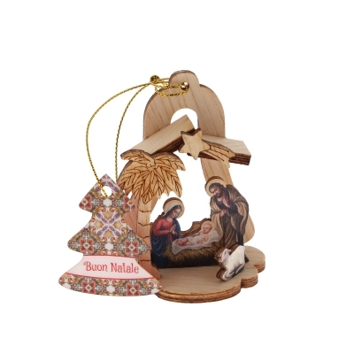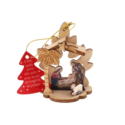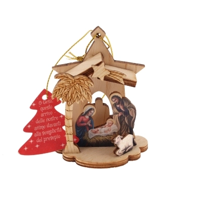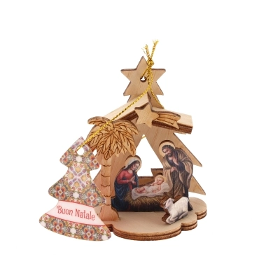 Bellissima decorazione natalizia in legno, un piccolo presepe da appendere all'abero di Natale o da appoggiare ovunque vogliate! Confezionato in una scatolina natalizia e festosa, questa natività è un pensierino dolcissimo da regalare. I soggetti sono assortiti, verrà inviato il primo soggetto disponibile.