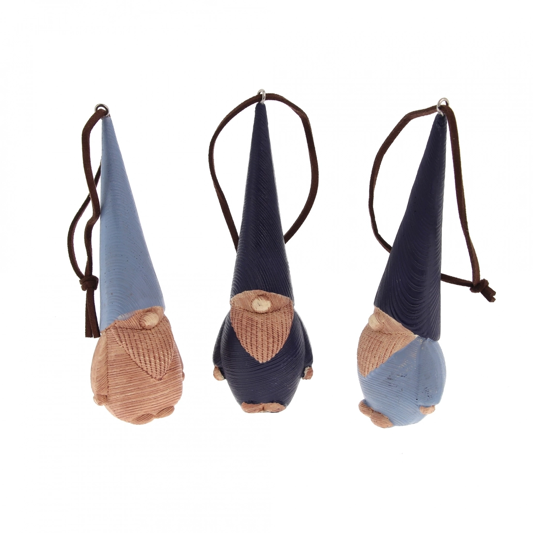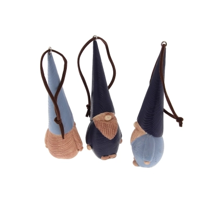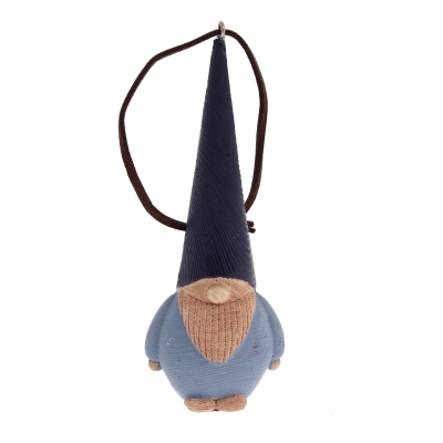 Tenerissimi gnomi in legno, da appendere come decorazione dell'albero di Natale, realizzati in legno con particolari colorati con le tonalità del celeste/blu. I soggetti sono assortiti, verrà inviato il primo soggetto disponibile.