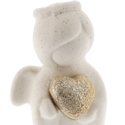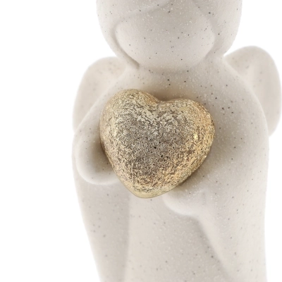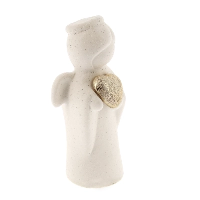 Carinissimo Angelo in porcellana bianca con cuore in resina dorata. Questa bellissima raffigurazione di Angelo che tiene tra le braccia un cuore, lo rende un regalo unico per qualsiasi occasione che renderà felice la persona a cui verrà donato!