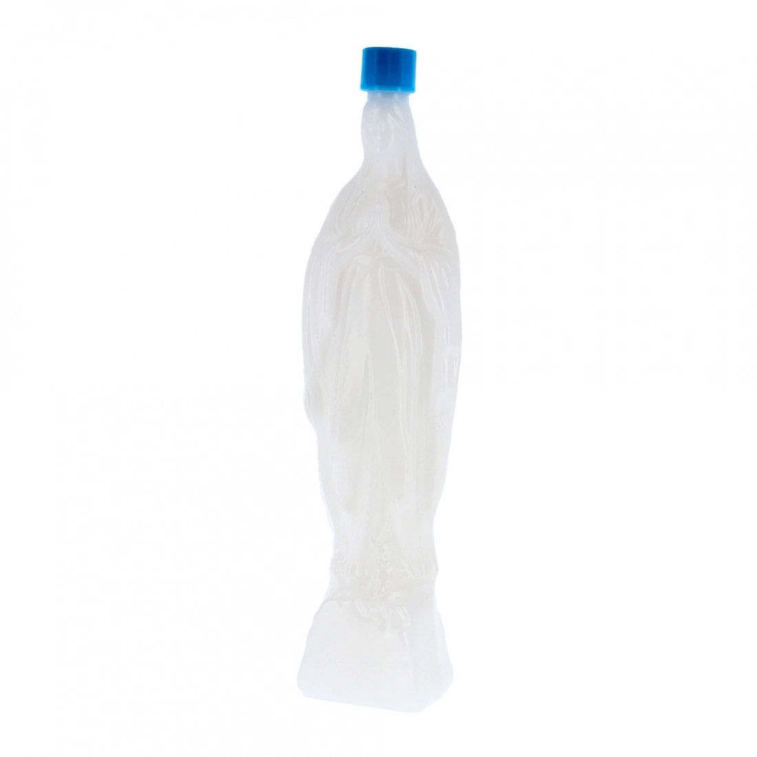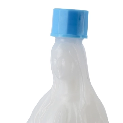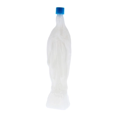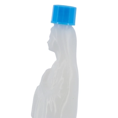 Bottiglietta in plastica per acqua benedetta raffigurante la Madonna di Lourdes, dotata di tappo avvitabile. Ideale da tenere in casa o da regalare. Altezza 18,5 cm