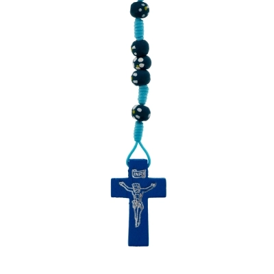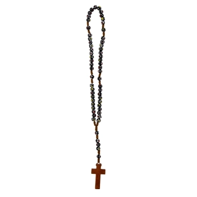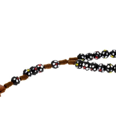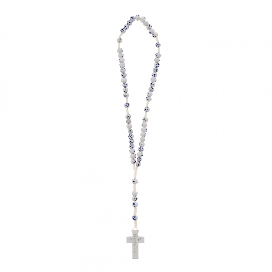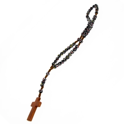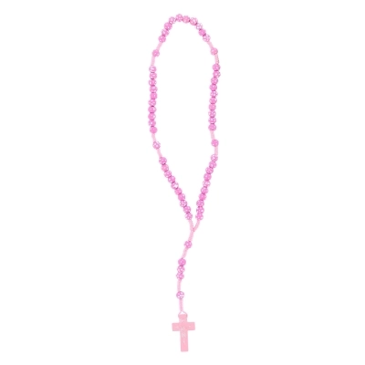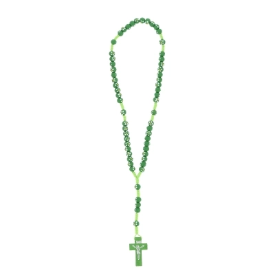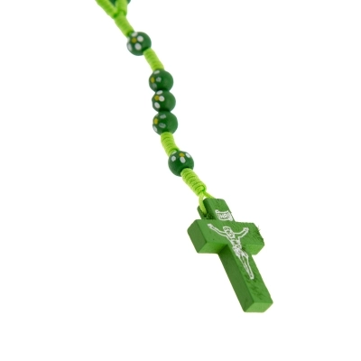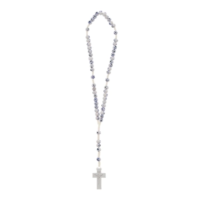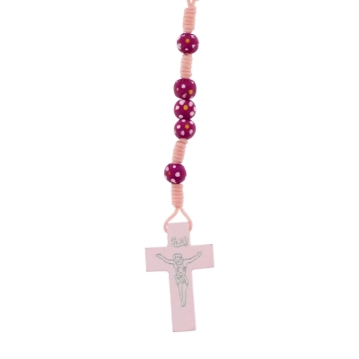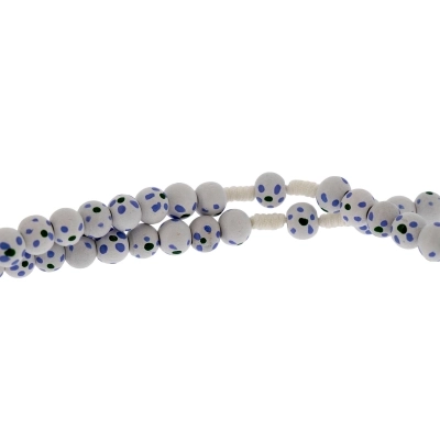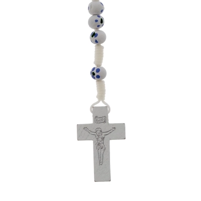 Carinissima corona del rosario della lunghezza di 30 cm e croce di 4x2,5 cm. Realizzata in legno e cordino bianco, presenta grani di 6 mm dipinti a mano. Oggetto sacro e simbolo di devozione, la corona del rosario può offrire conforto e ispirazione a coloro che la utilizzano nella pratica della propria fede.