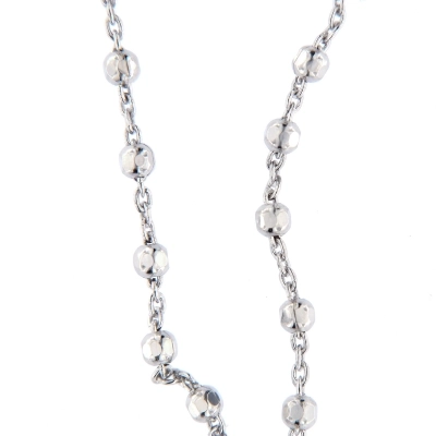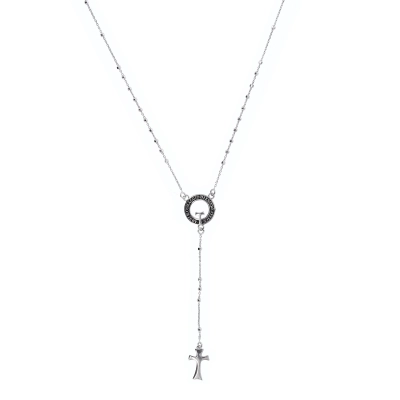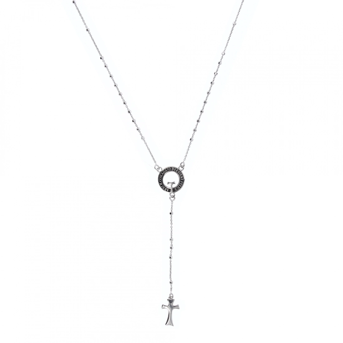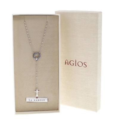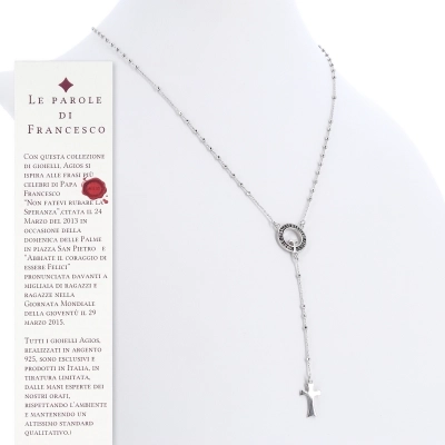 Elegante collana rosario realizzata interamente in argento 925 e lunga 46 cm. Al centro c'è un elemento del diametro di 1,4 cm su cui è riportata la celebre frase di Papa Francesco " Abbi il coraggio di essere felice", pronunciata durante la Giornata Mondiale della Gioventù del 2015. All'estremità del rosario c'è una croce di 1,5x1 cm. Articolo molto interessante perchè unisce eleganza e fede, da regalare e regalarsi in ogni occasione!