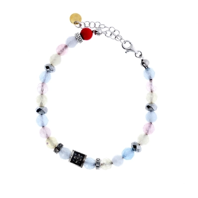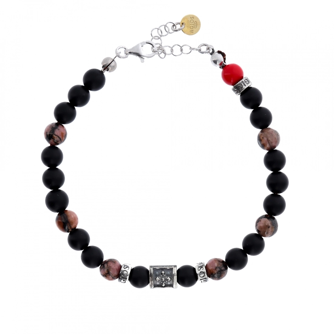 Bellissimo l'accostamento tra le pietre naturali e degli elementi in argento 925 brunito ed è un gioiello da indossare che unisce l'eleganza alla fede.