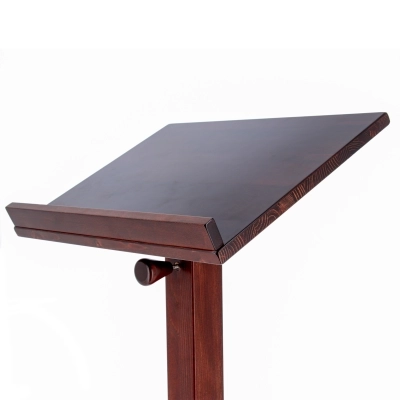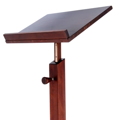 Leggio astile in legno massello e meccanismo in metallo, regolabile, delle dimensioni massime di 120 cm. E' formato da due parti , facilmente componibili. Realizzato artigianalmente con materie prime di ottima qualità. Squadrato e dalle linee pulite, è un prodotto semplice e moderno. Il piano d'appoggio, con barra per poggiare il libro misura 45x45 cm.