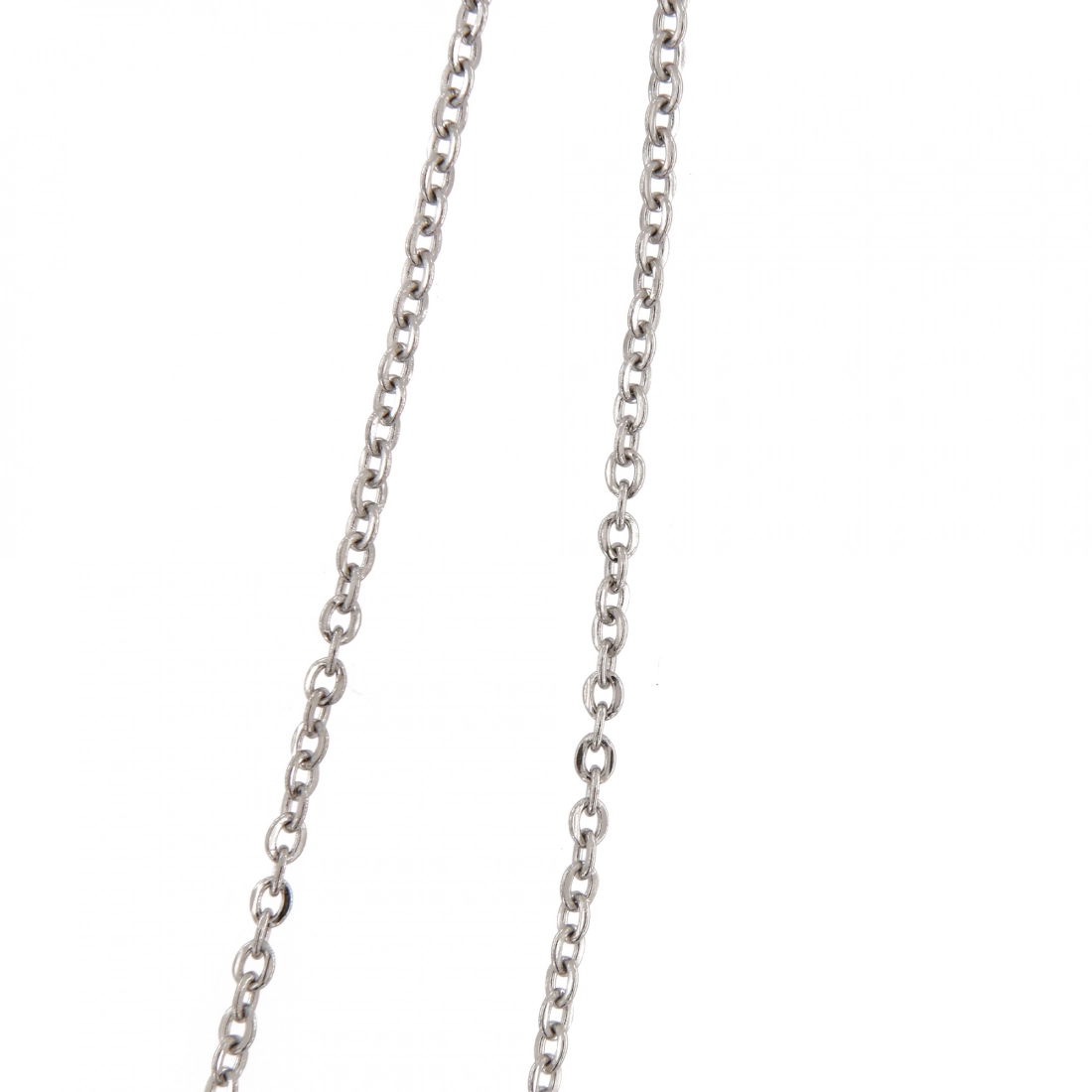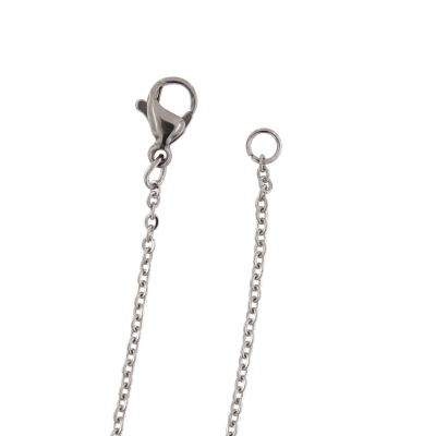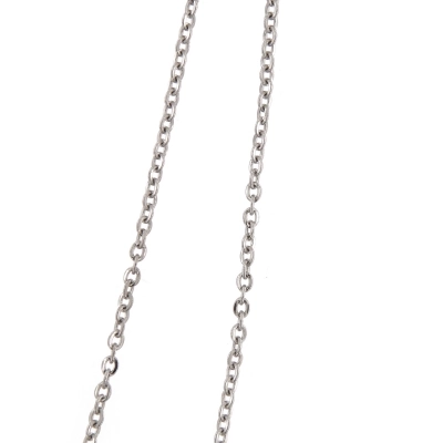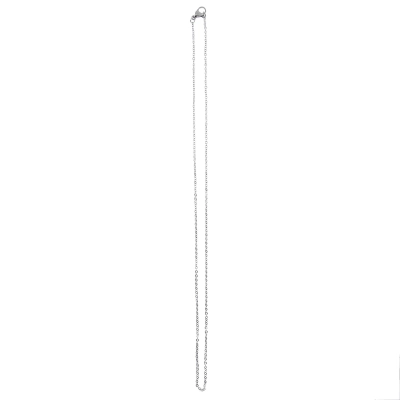 Catenina in acciaio a maglia tonda da 1,25 mm. La lunghezza totale della catenina è di 45 cm e la chiusura è con moschettone. La catenina è realizzata in acciaio: un materiale apprezzato per la sua resistenza e durabilità, rendendo la catenina un'ottima alternativa rispetto ai materiali tradizionali come l'argento o l'oro, inoltre l'acciaio è noto per la sua proprietà di non alterare il colore nel tempo. Realizzato in Italia.