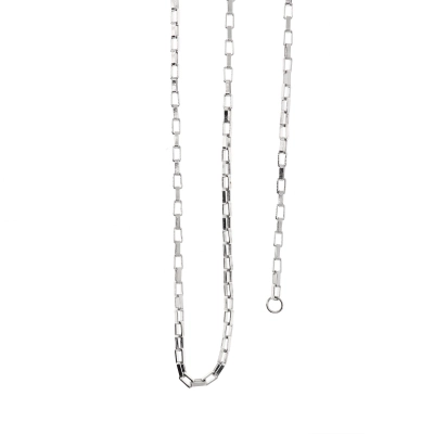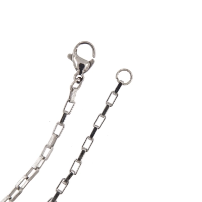 Catenina in acciaio a maglia piatta da 2 mm. La lunghezza totale della catenina è di 55 cm e la chiusura è con moschettone. Avendo una maglia più grande è ideale anche per uomo. La catenina è realizzata in acciaio: un materiale apprezzato per la sua resistenza e durabilità, rendendo la catenina un'ottima alternativa rispetto ai materiali tradizionali come l'argento o l'oro, inoltre l'acciaio è noto per la sua proprietà di non alterare il colore nel tempo. Realizzato in Italia.