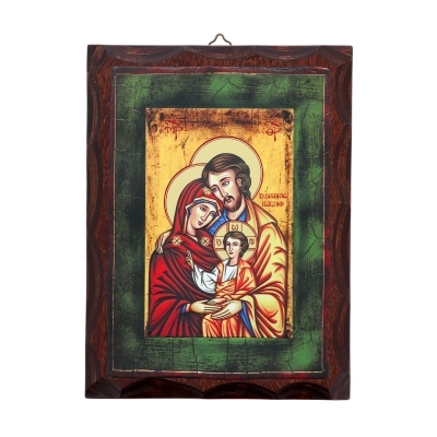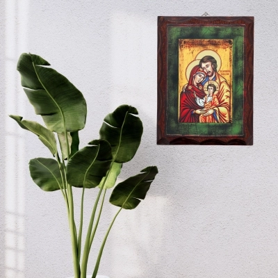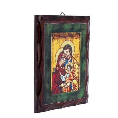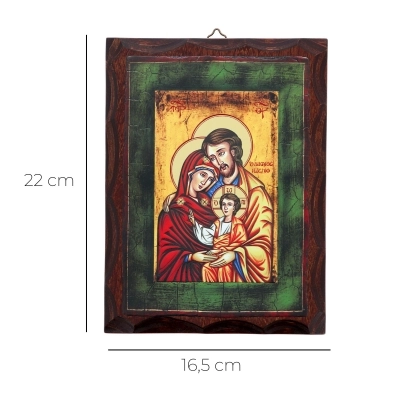Suggestiva icona raffigurante la Sacra Famiglia stampata su legno betulla tinto dalle dimensioni di 16,5x22 cm. Particolarissima è la stampa con i dettagli in rilievo. Linea moderma con bordi lavorati. Prodotto realizzato in Italia da artigiani esperti nella conservazione, nel taglio e nell'ultilizzo del legno.