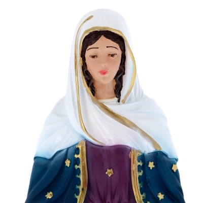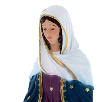 Bellissima statua della Madonna delle Lacrime, dall'altezza di 22 cm, in polvere di marmo dipinta a mano. Eseguita interamente a mano, dallo stampaggio alle finiture, presenta dettagli curati in ogni minimo particolare. Realizzata appositamente per Editrice Shalom, che ne ha seguito direttamente tutta la lavorazione, dalla scultura in plastilina, alla realizzazione del primo modello fino alla fase di pittura.