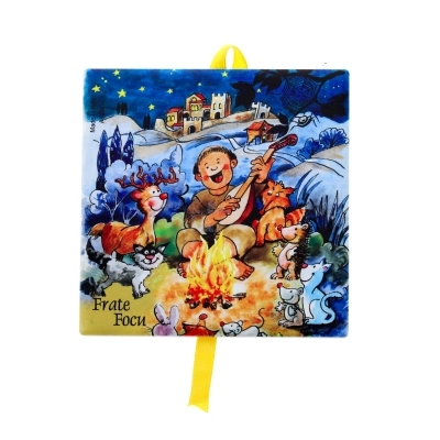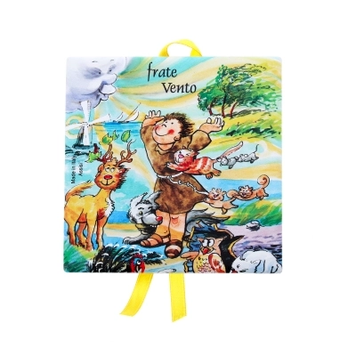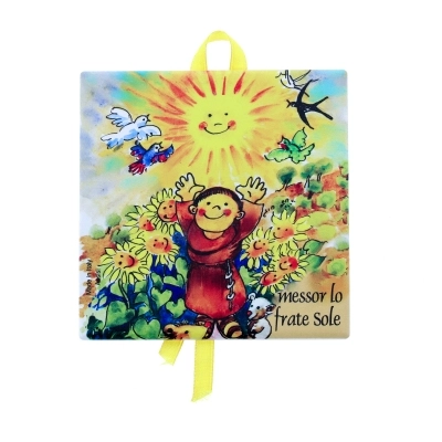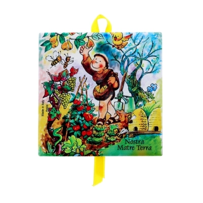 Deliziosa tavoletta in ceramica con nastrino per essere appesa. Ogni variante rappresenta un elemento naturale, citato da san Francesco nel suo "Cantico delle Creature". Dimensioni 10x10 cm.