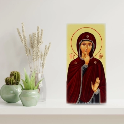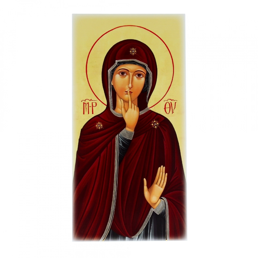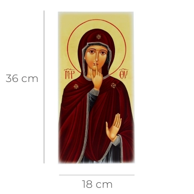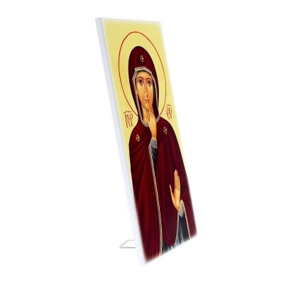 Quadro raffigurante la Madonna del Silenzio, impreziosito da dettagli argentati decorati a mano e in rilievo, chelo rendono fine, raffinato e adatto a qulasiasi ambiente e a tutti gli stili di arredamento. Il quadro viene fornito inscatolato e con piedistallo in metallo per poterlo appoggiare, ma si può anche appendere in quanto è presente sul retro un piccolo forellino. Totalmente realizzato in Italia con sapiente manualità artigiana.