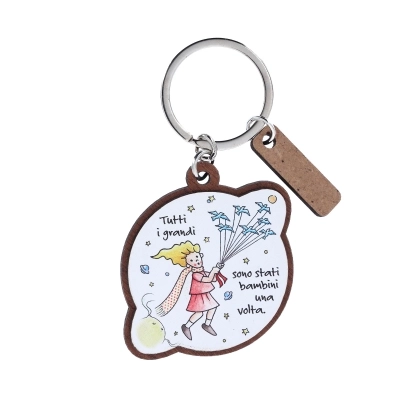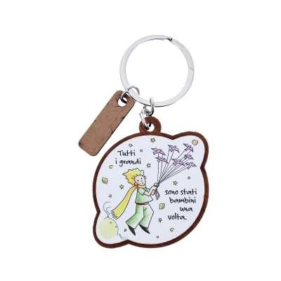 Simpatico portachiavi con immagine Piccolo Principe in cui è riportata la celebre frase, tratta dall'omonimo libro: "Tutti i grandi sono stati bambini una volta". Carinissima idea regalo da donare a grandi e piccini in ogni occasione speciale!