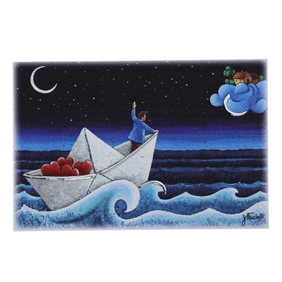 Quadretto in legno intitolato "Un Carico d'amore". L'immagine è impreziosita da dettagli argentati decorati a mano e in rilievo, che rendono il quadretto fine, raffinato e adatto a qualsiasi ambiente e a tutti gli stili di arredamento. Il quadretto è da appoggio, ma grazie al foro posto sul retro è possibile anche appenderlo. Carinissima idea regalo per tutte le occasioni, ideale anche bomboniera per qualsiasi evento. Totalmente realizzato in Italia con sapiente manualità artigiana.